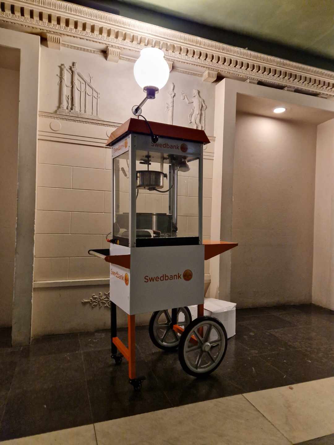 Vi levererar vagnen till din plats och ställer in den så att den är redo att användas när ditt event startar. Vagnen gär på hjul och är enkel att förflytta.