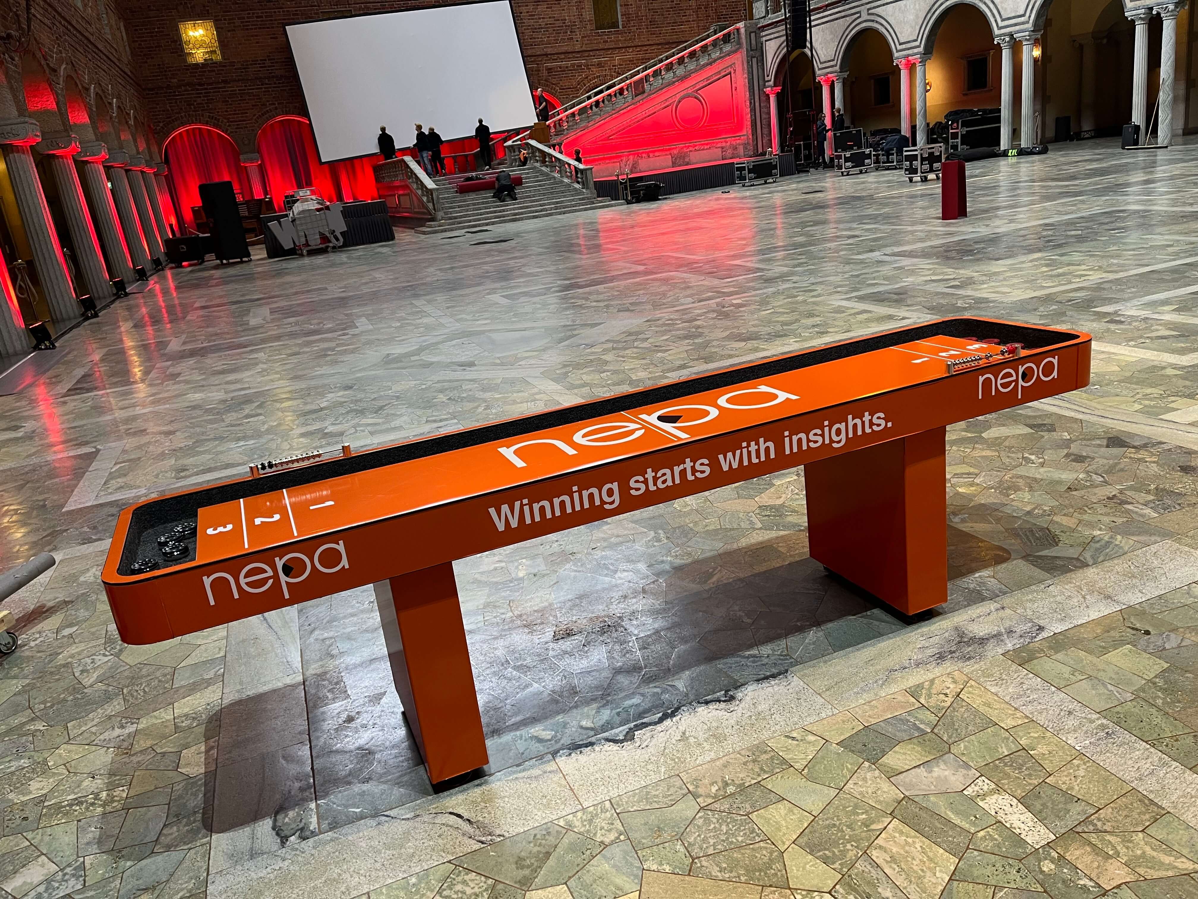 Att hyra ett shuffleboard är ett smidigt sätt att addera något extra till ert event utan att behöva stå för förvaringsutrymme eller underhåll. Våra shuffleboard-banor är tillverkade i robusta material som ger en jämn och behaglig spelupplevelse, och de levereras alltid i perfekt skick.